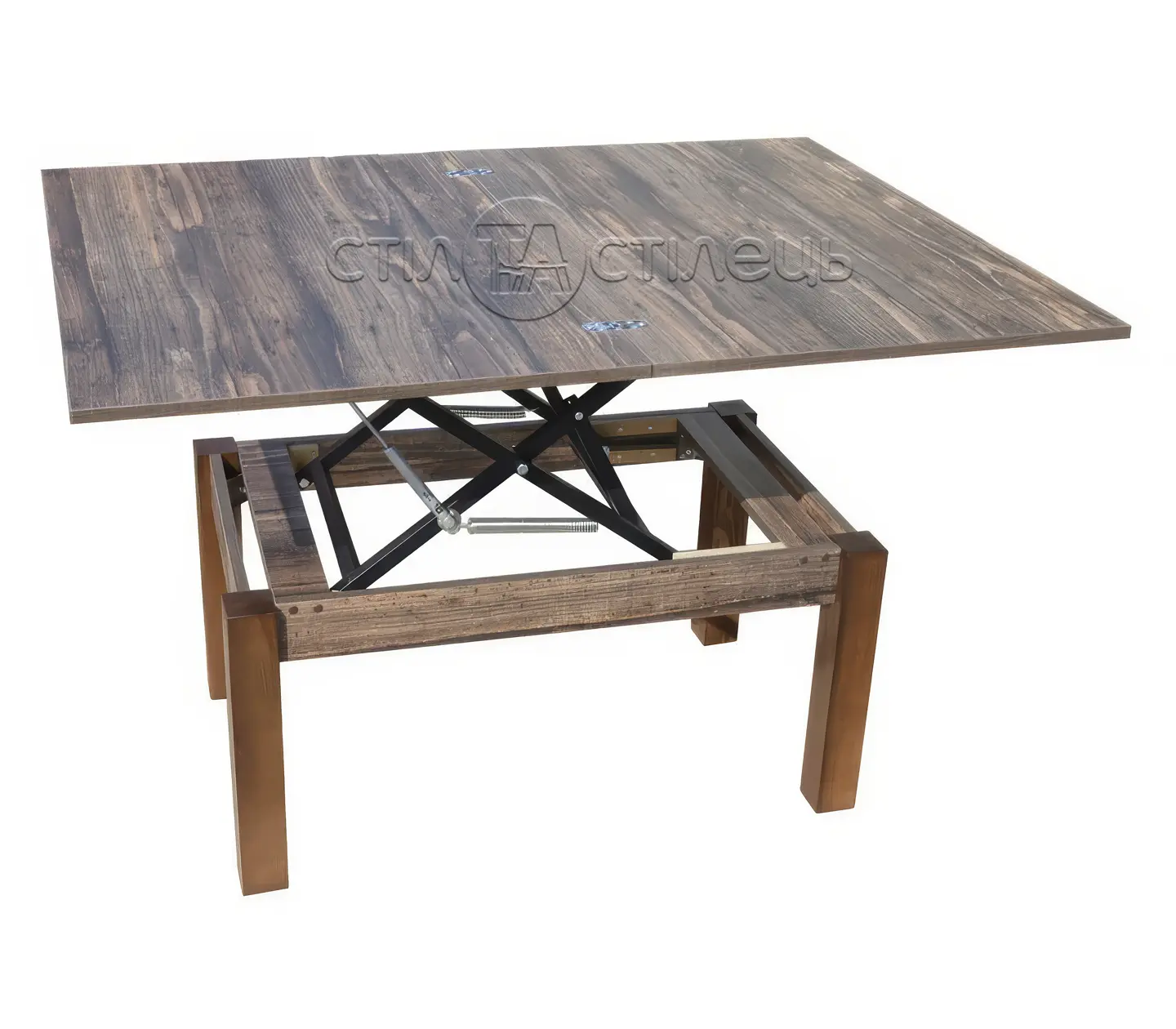• Стіл-трансформер Флай обладнаний механізмом підйому газ-ліфт і поворотним механізмом розкладання. Для виготовлення механізму розкладання були використані квадрат-труби, що мають товщину 2 мм.